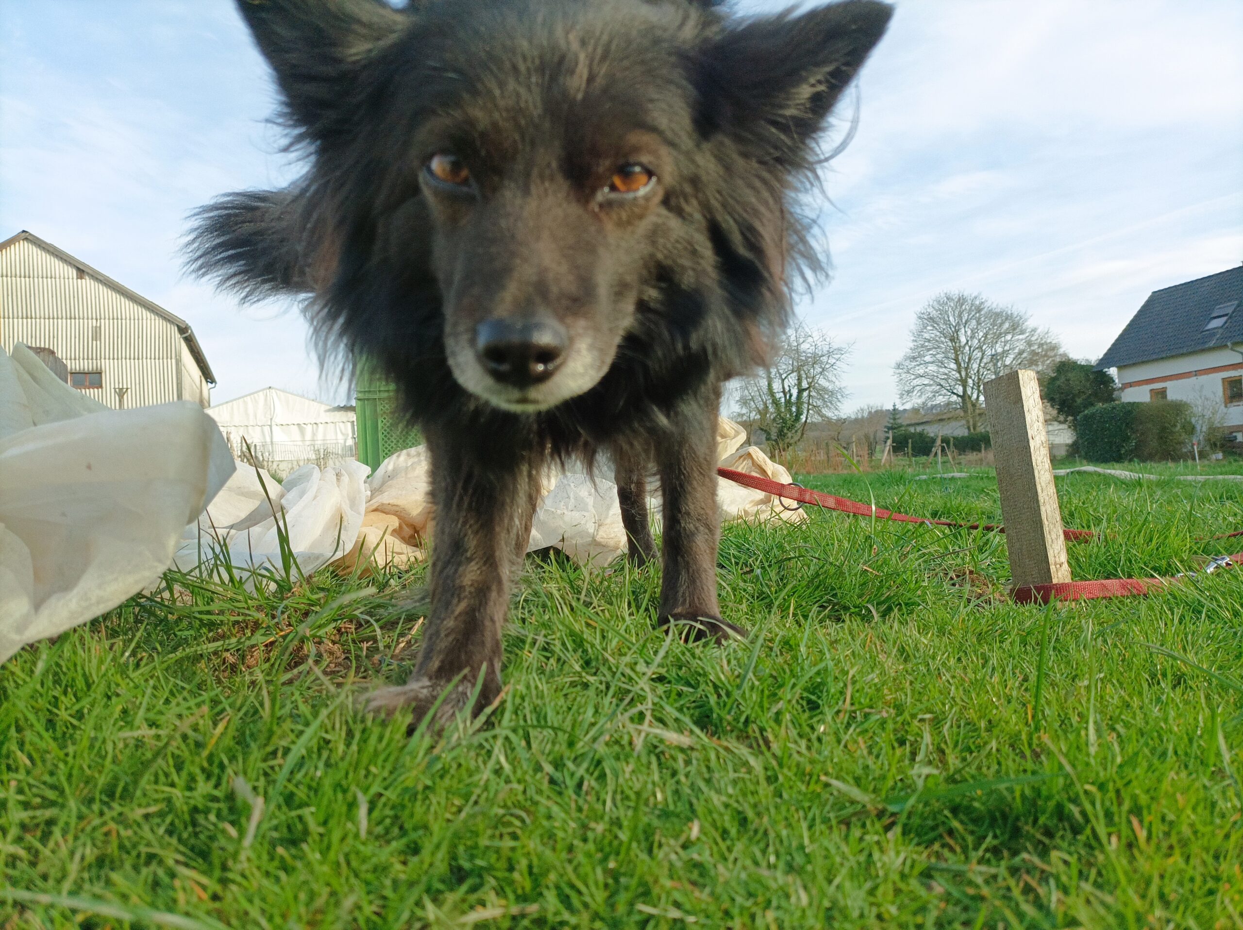 Szuki ist ein unstaatlich geprüfter Gärtner*innenbegleithund. Sie bleibt fast immer auf den Wegen, spürt Wühlmausgänge auf und vertilgt sämtliche Gemüseabfälle, wenn man sie lässt. Ihre Leidenschaft sind Karotten.